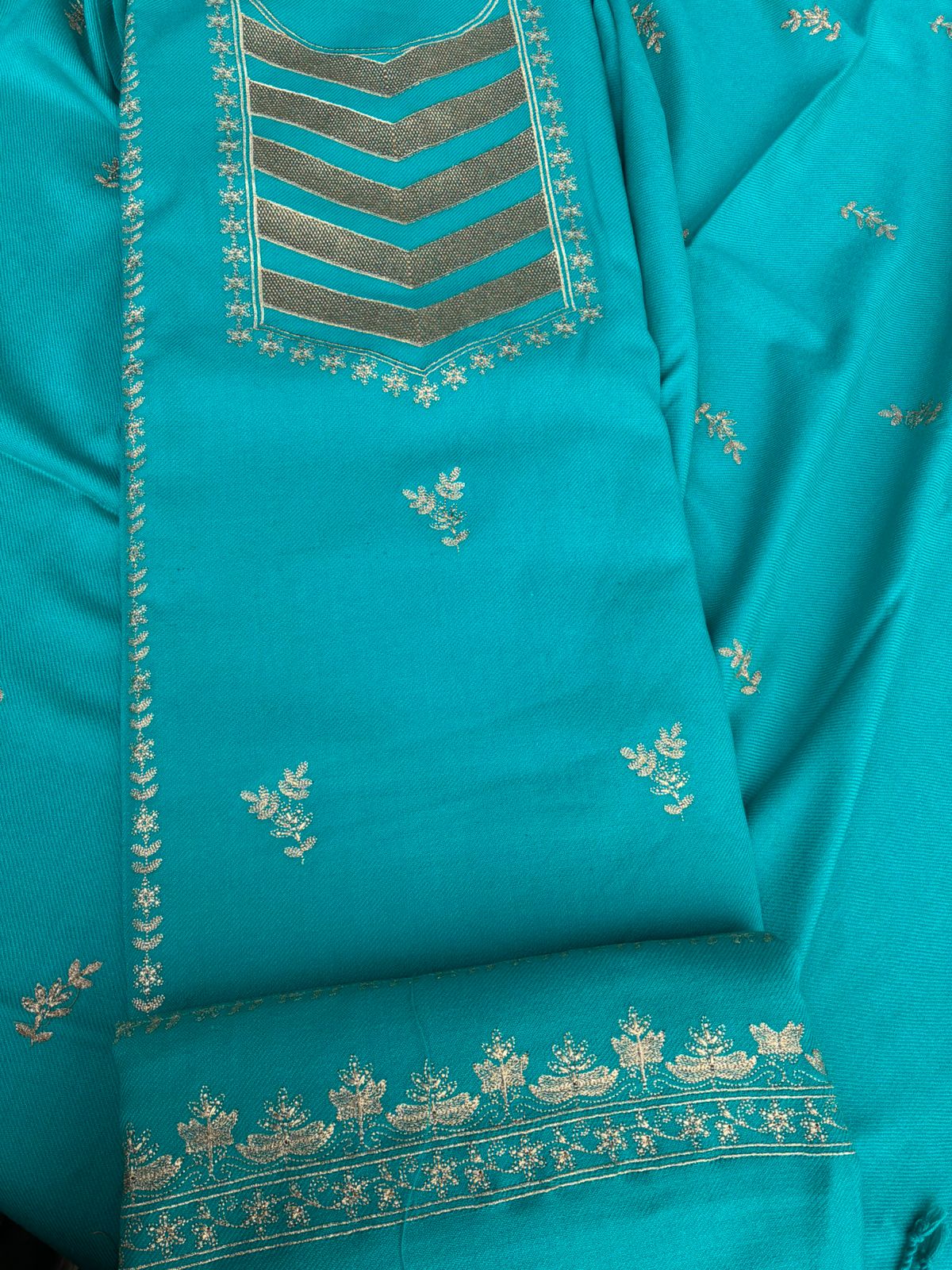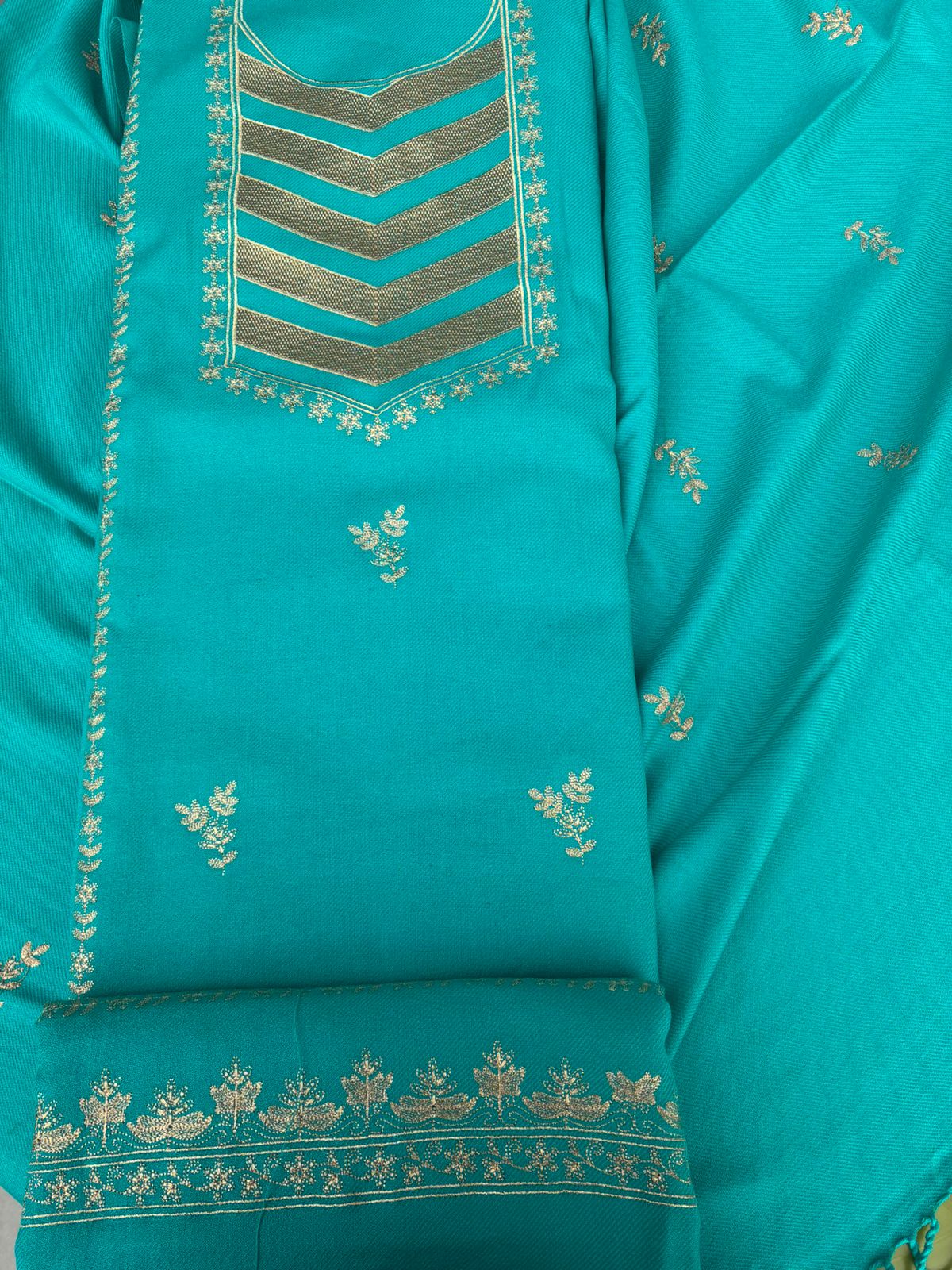 Shirt:- Winter Pure Cotswool Fabric with Zari work on shirt comes with total 4.5 Running fabric