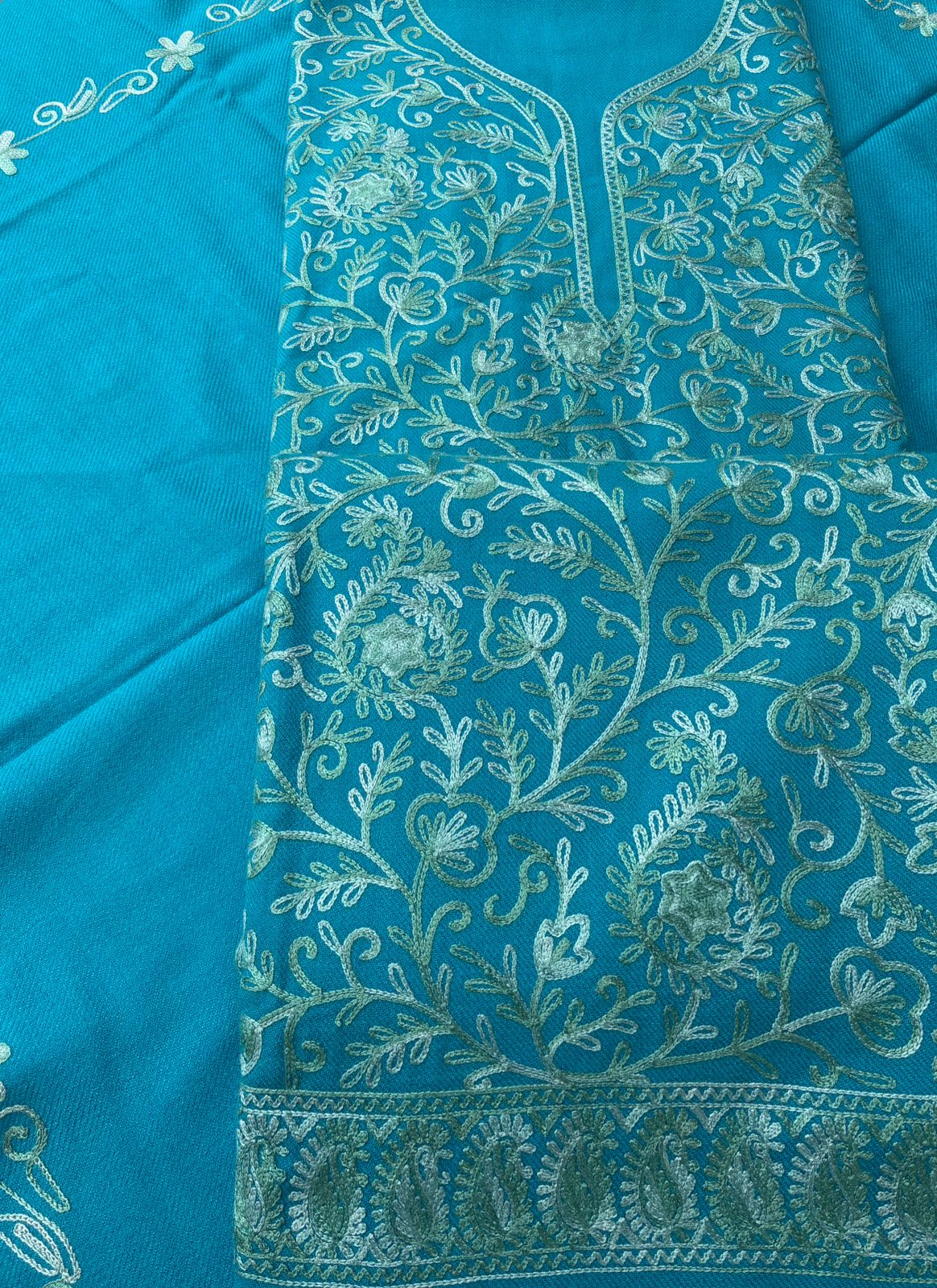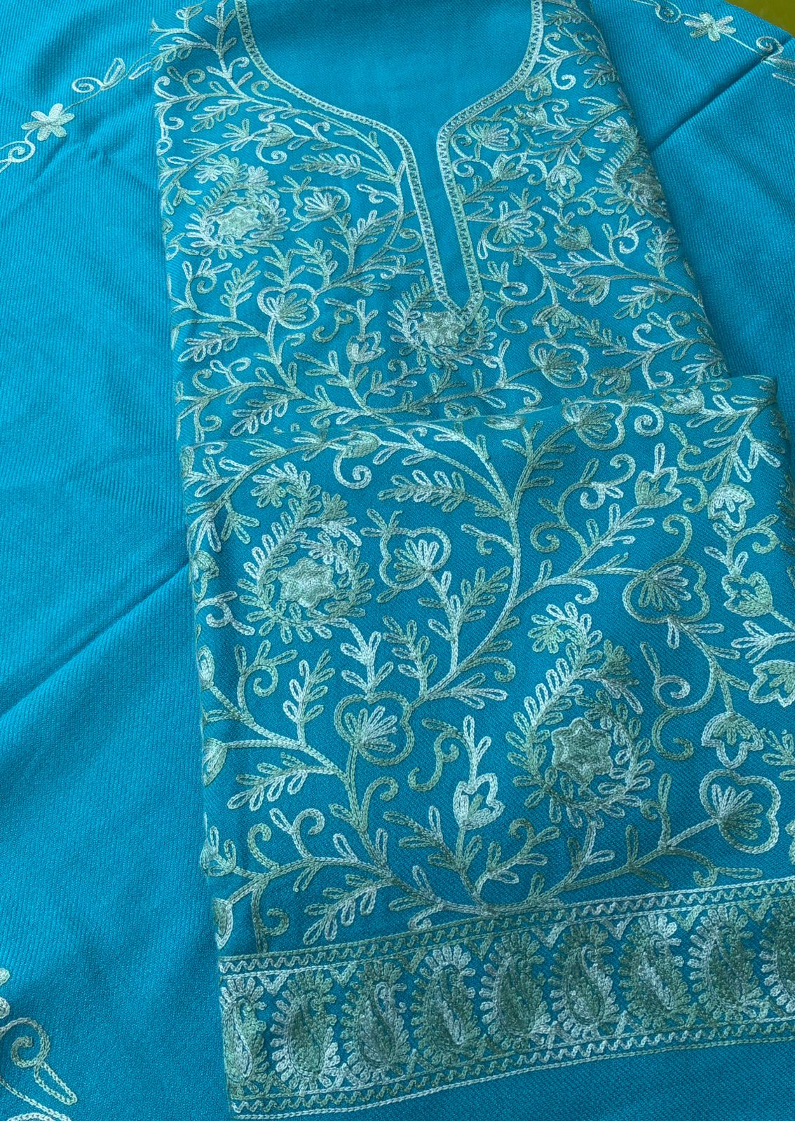 Shirt:- Winter Pure Cotswool Woolen Fabric with Heavy Kashmiri  Zaal work on shirt  fabric comes with total 4.5 Running fabric