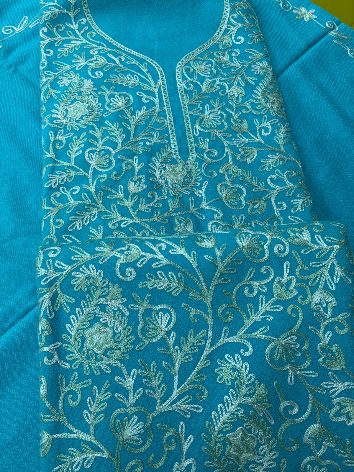 Pure Cotswool Kashmiri Full ZAAL Work Suit-Blue Color